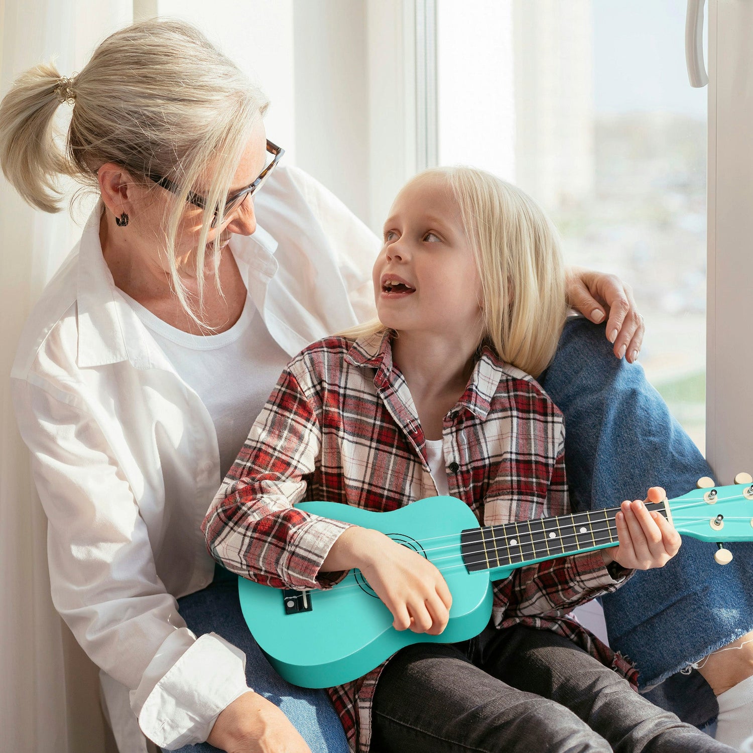 ADM Ukulele for Beginners Hawaiian Wood Ukelele Kit for Kids Adult Student Starter Professional Ukalelee Pack Bundle with Free Lessons Gig Bag Strap Nylon String Tuner (Baby Yellow, 21 Inch)
